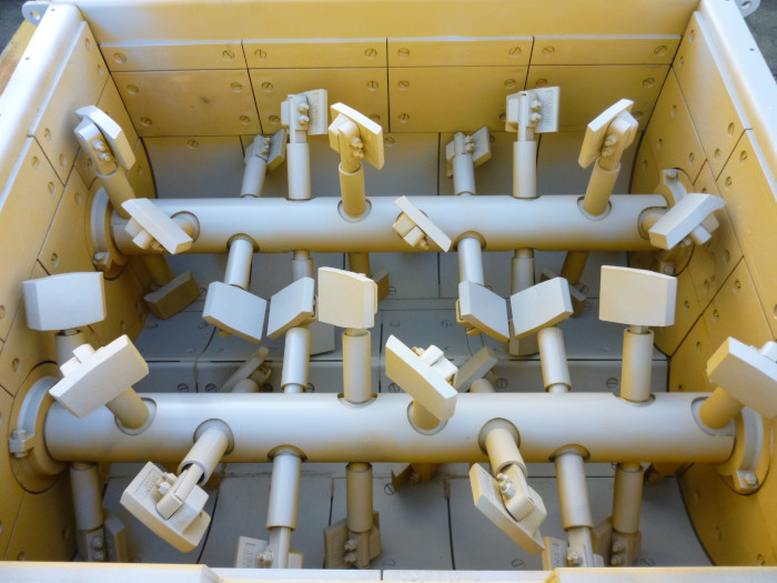 與日本德島大學(xué)共同研發(fā)的攪拌器具有以下特點(diǎn):雙臥軸強(qiáng)制式攪拌器,長(zhǎng)軸短臂,淺底結(jié)構(gòu)。內(nèi)部襯板、葉片采用高強(qiáng)度鑄鐵,耐磨,使用壽命長(zhǎng)。攪拌器配有電加熱裝置,避免剛開(kāi)機(jī)時(shí)缸冷和瀝青粘結(jié)。底門(mén)采用大型滑門(mén),排料迅速。葉片實(shí)現(xiàn)三維空間的快速混合,提高拌和量和攪拌速度,從而使設(shè)備的生產(chǎn)能力得到了大幅提升。